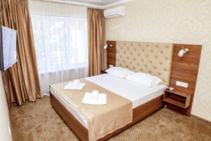 2-х местный 1-но комнатный номер 1 категории «Полулюкс» (18-28м2),корпус №2 – двуспальная кровать или две односпальные, телевизор, холодильник, сплит-система, санузел. Дополнительное место – диван (2 доп. места) или кресло (1 доп. место), максимально 2+2 чел;