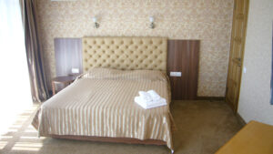 2-х местный 2-х комнатный номер 1 категории (31м2), корпус №1 – двуспальная кровать, диван, два кресла, телевизор, холодильник, сплит-система, санузел, балкон; Дополнительное место – диван, максимально 2+3 чел;